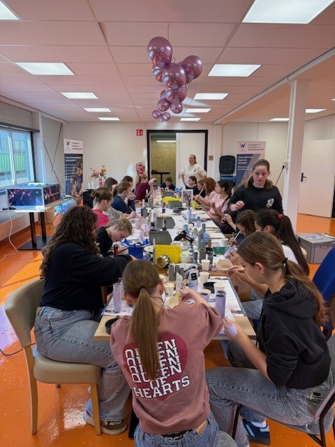 Tijdens Girls’ Day hebben 40 meiden van leerjaar 1 en 2 een kijkje genomen in de wereld van techniek bij Installatiewerk Zuid & Midden in Uden. Met veel enthousiasme gingen zij zelf aan de slag met een creatieve én technische opdracht: het maken van een make-up bakje van afvoerbuizen.