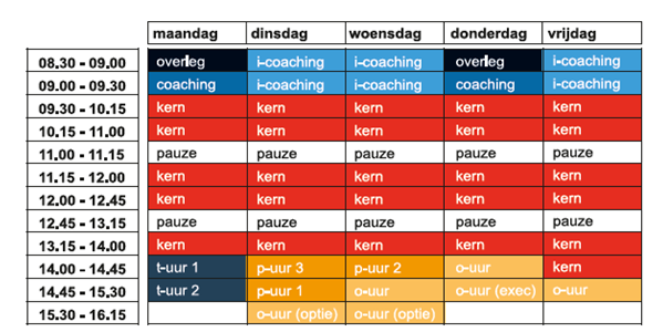 Bekijk hieronder een voorbeeld van een weekschema van leerjaar 1: